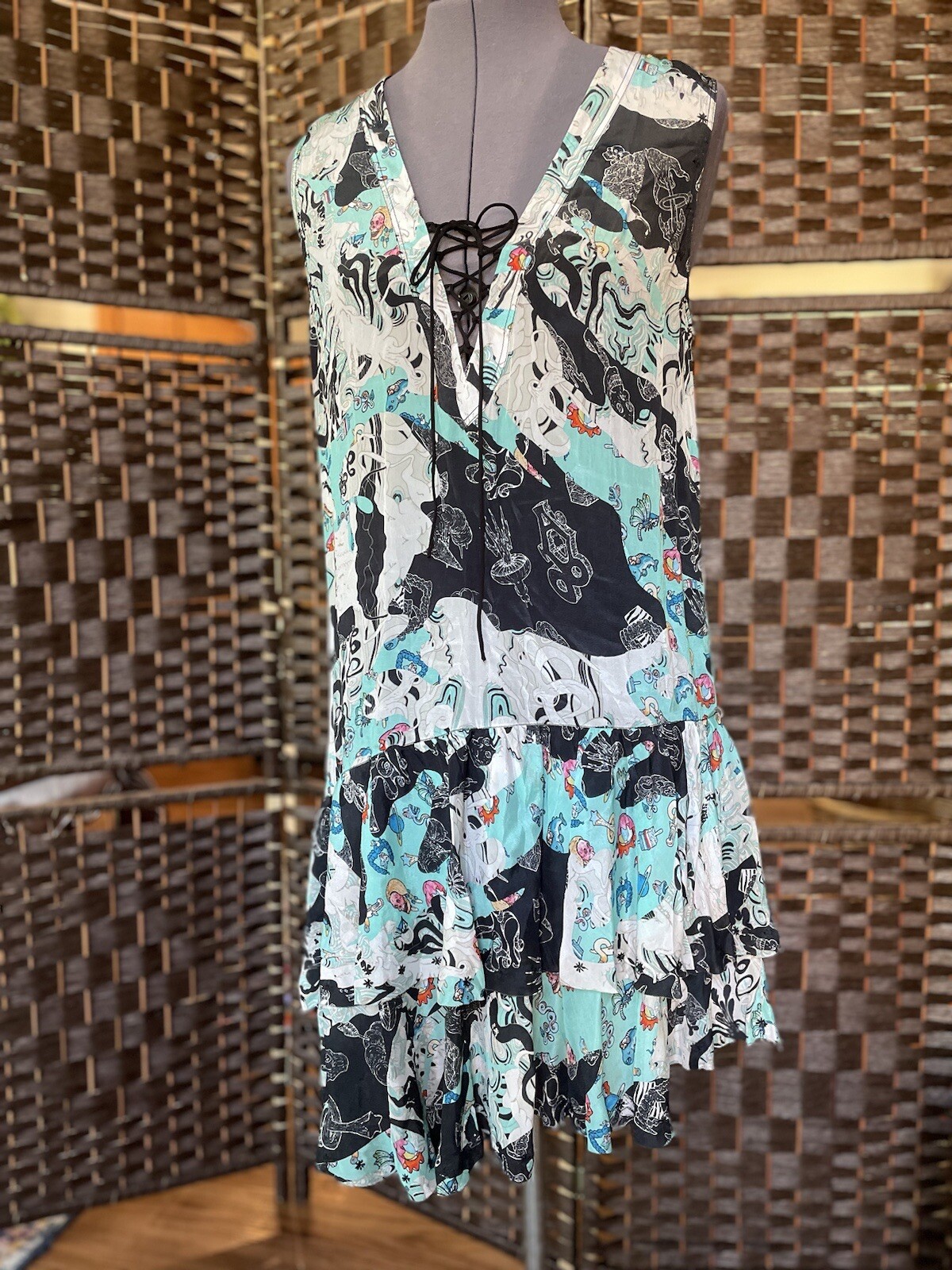 Be the first to review “zadig and voltaire Rory dress ruffled asymmetrical hem tank mini M 4 6 skulls”