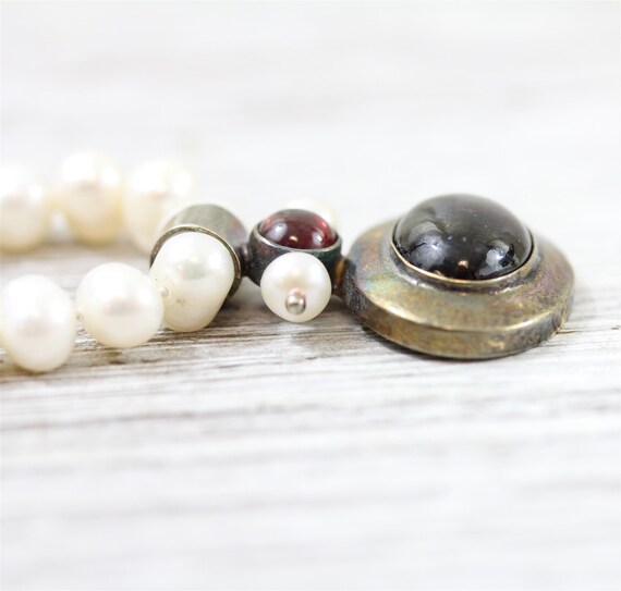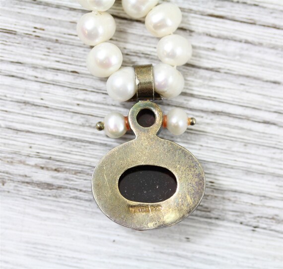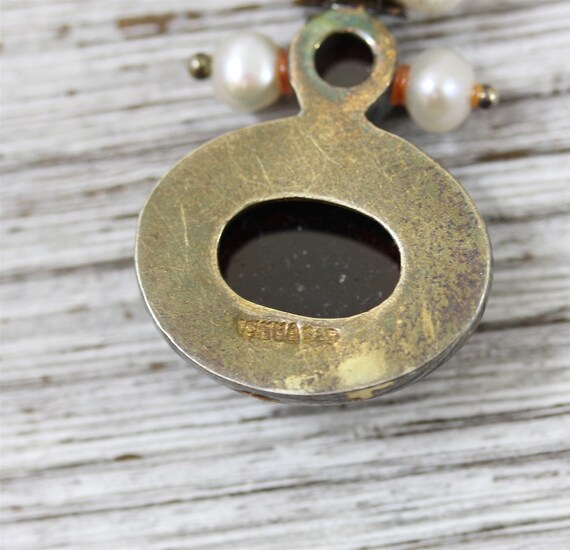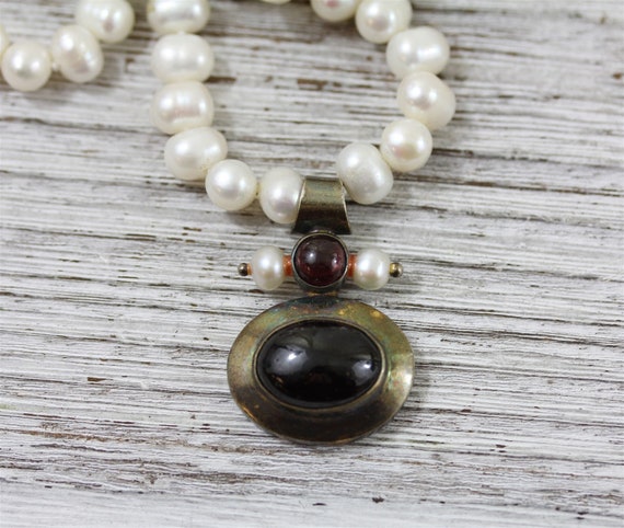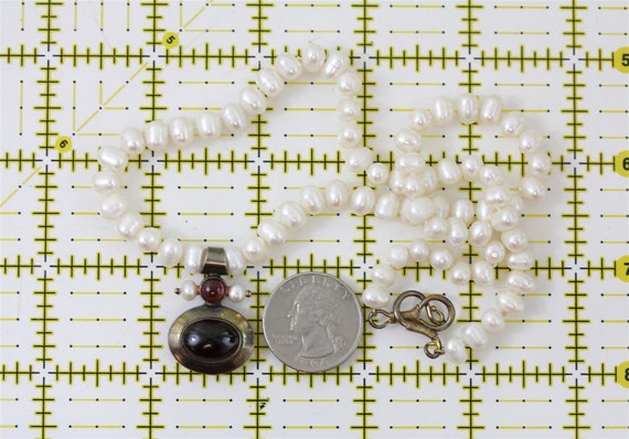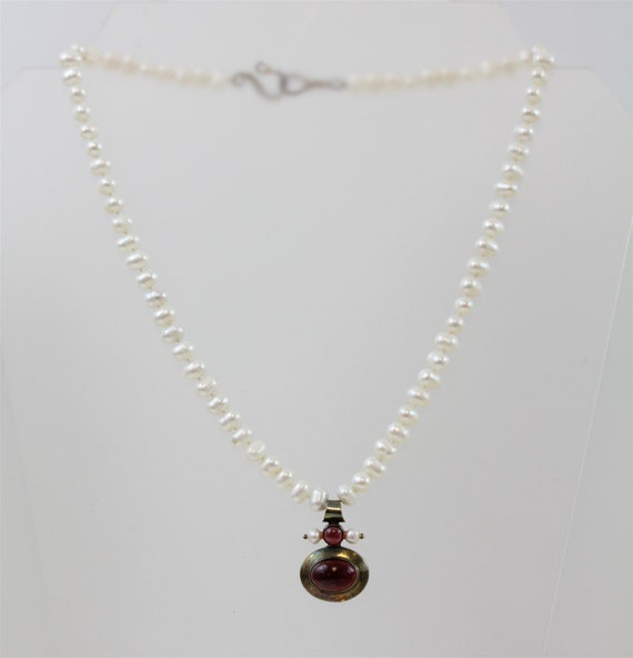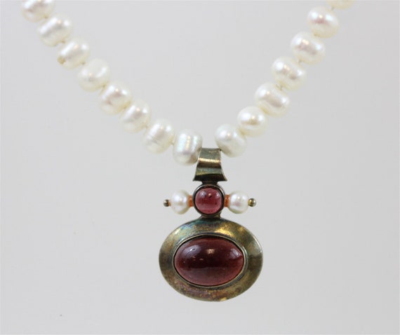 Vintage Designer Sterling Silver 925 Pearl Garnet Amethyst Necklace Pendant Pretty 18.5" Classic Staple