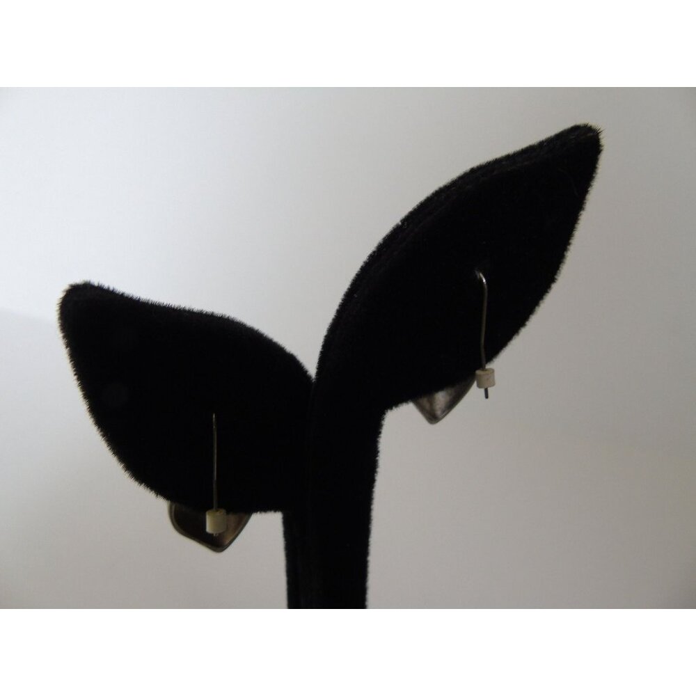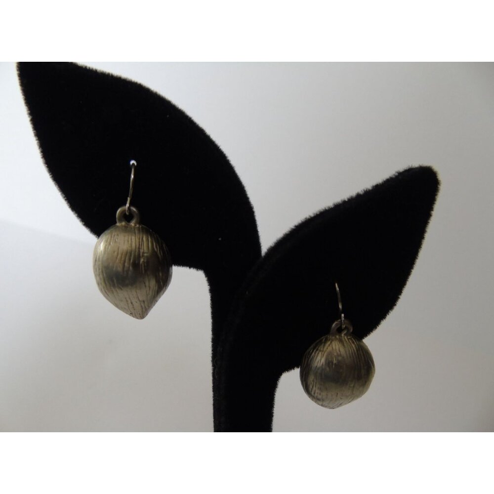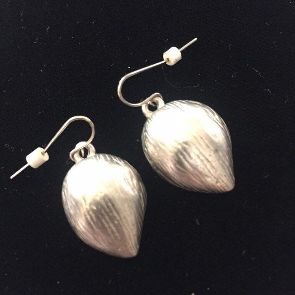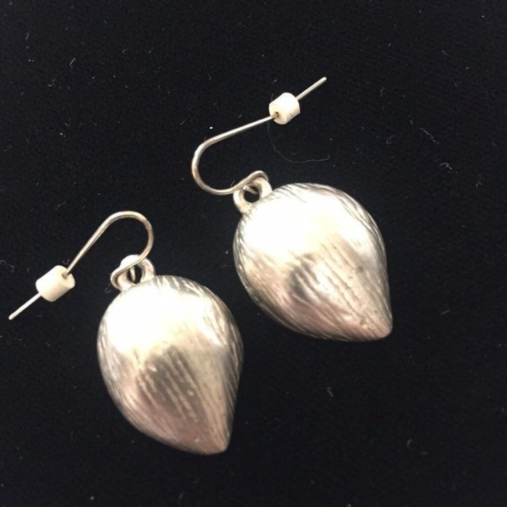 Vintage Dkny Earrings Pierced Tear Drop Dangle 2 3/4" Threader Back Base Metal