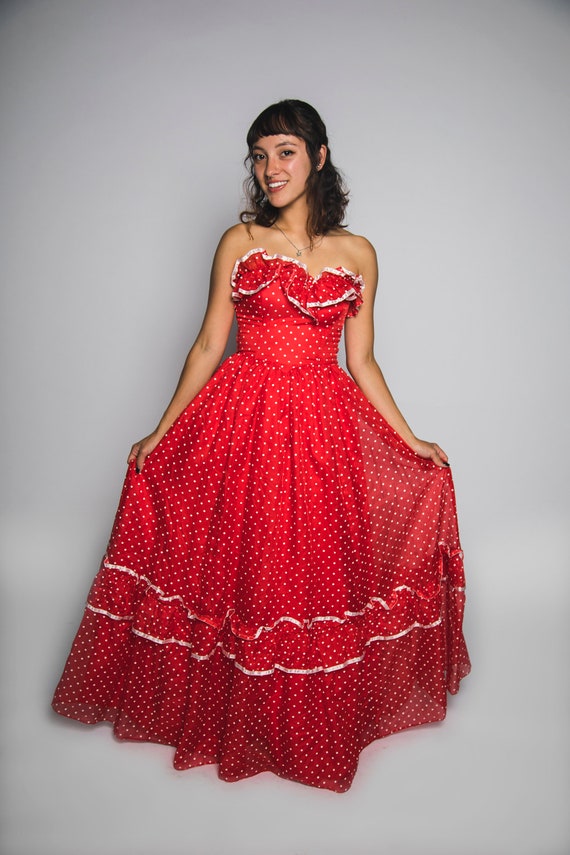 Vintage Prom Dress Gunne Sax Wedding Dress Jessica McClintock - Polka Dot Tulle Maxi 1980s Valentines Sweetheart Fashion - X-small small