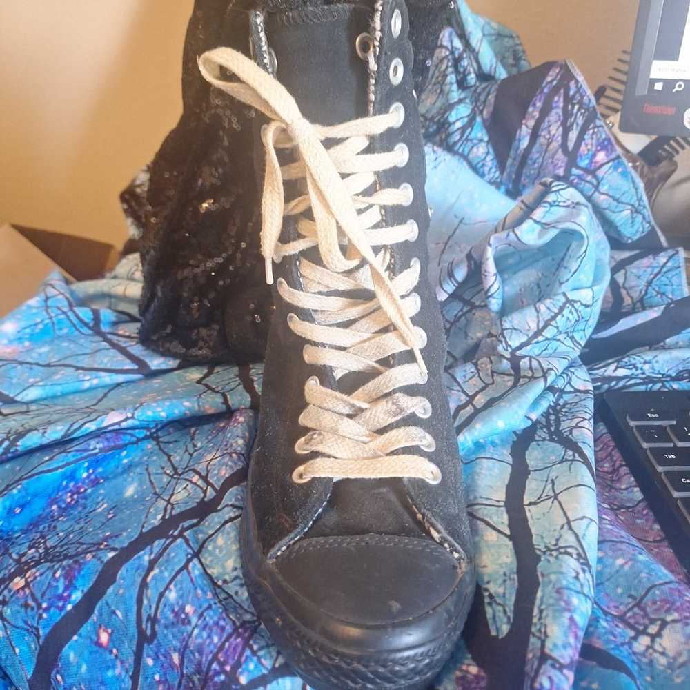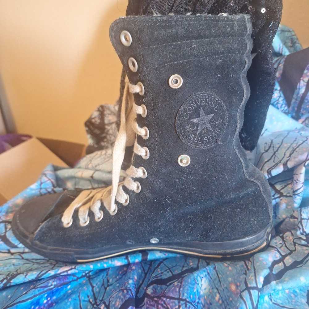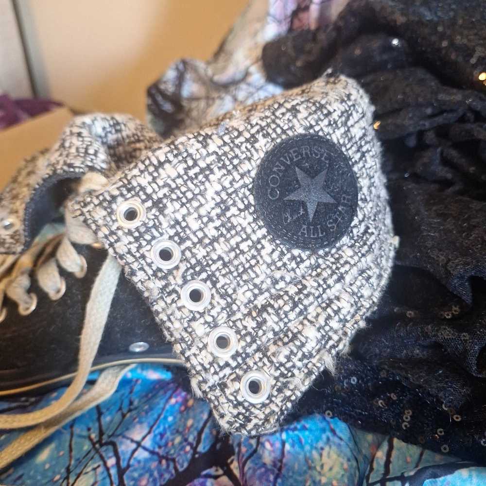 Vintage Converse Chuck Taylor All Star Hi Black Suede Tweed Fold Down men 9 w 11