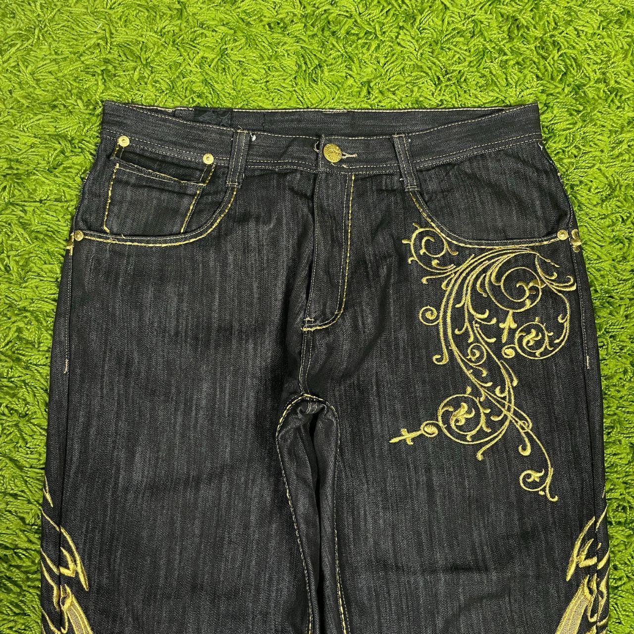 Vintage Men's Wide leg Embroidered Jeans - Black/Gold - 38" – Vintage Imperious Delf Winged Embroidered Baggy Wideleg …