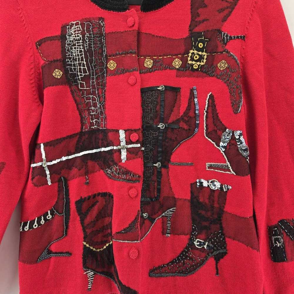 Vintage Michael Simon Cardigan Sweater Women Small Boots Shoes Sequins Lace 2002