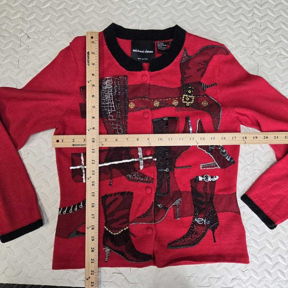 Be the first to review “Vintage Michael Simon Cardigan Sweater Women Small Boots Shoes Sequins Lace 2002”