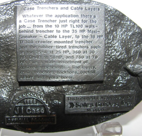Vintage J I Case Construction 360 Trencher RF300 TL100 Maxi-Sneaker 1988 Pewter Belt Buckle Mining Quarry Road Heavy Equipment Earth Moving