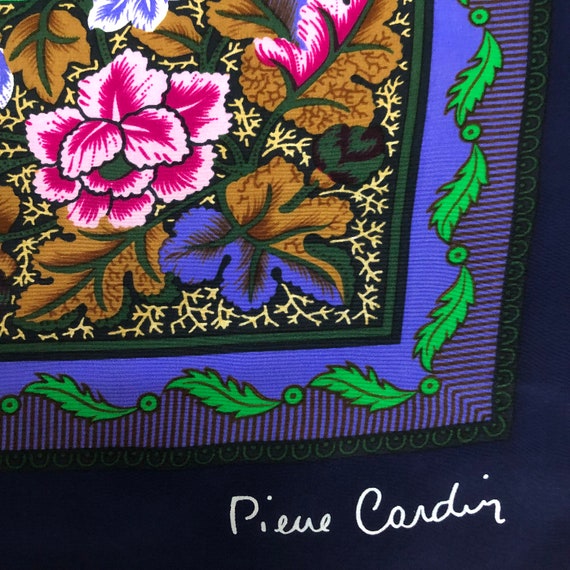 Vintage Pierre Cardin Floral Silk Scarf Flowers Neck scarf Neckwear Head Scarf Shawl Wrap Designer Luxury Casual Classic Elegant