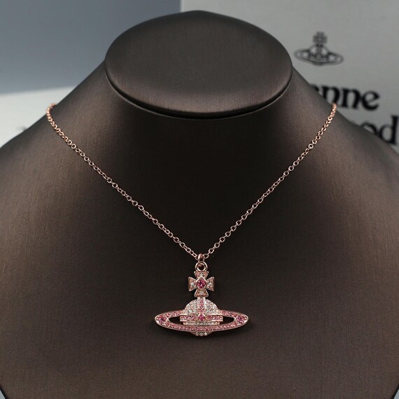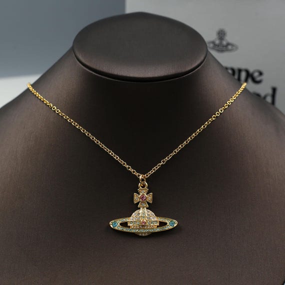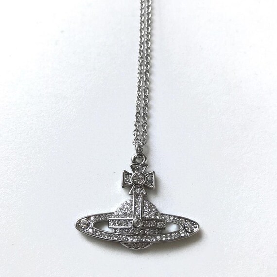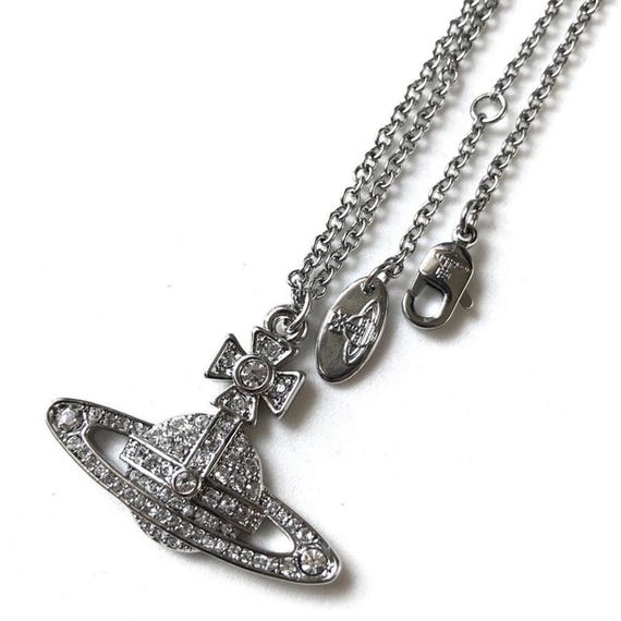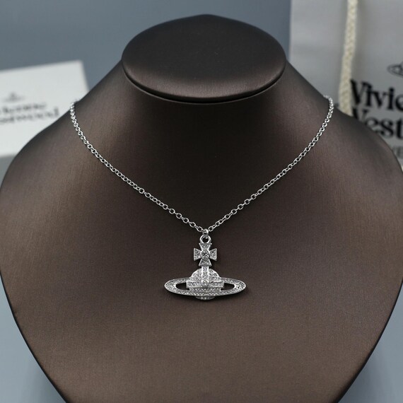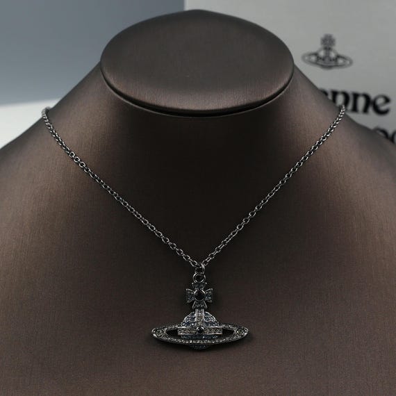 Vintage In Box 925 Silver Vivienne Westwood Necklace,Black CZ Diamond Saturn Pendant,Gifts for Her