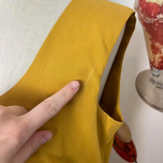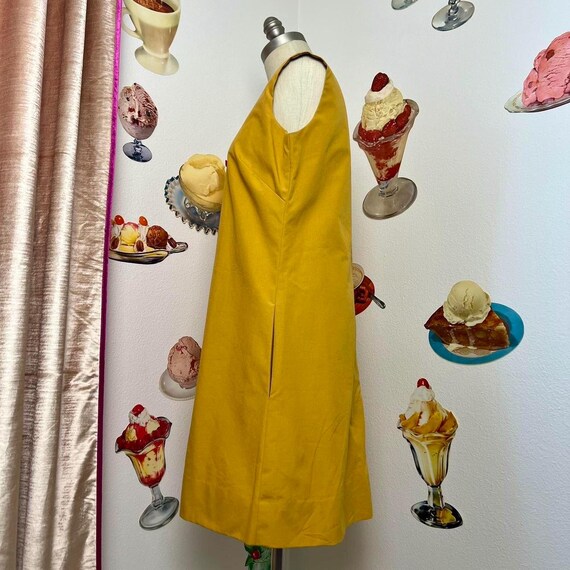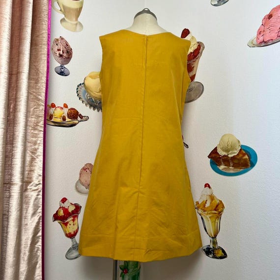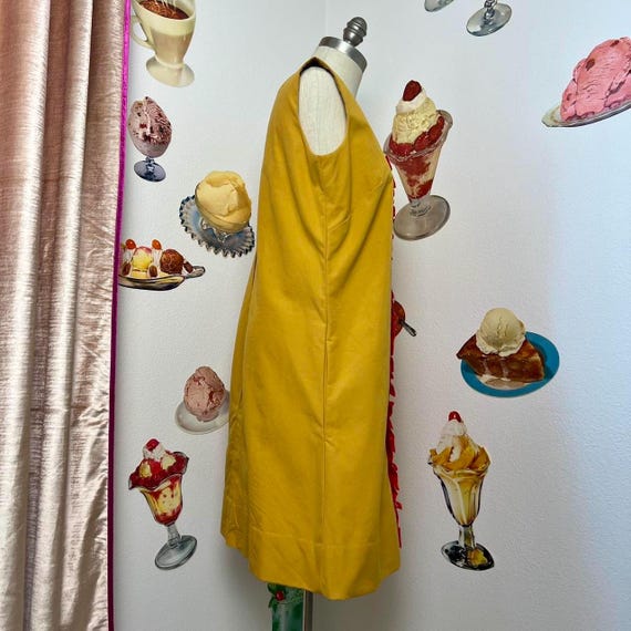 Vintage Rare 60s | Baba Kea Honolulu | Mod A Line Gold Ochre Polka Dot Red Orange Ruffle Hawaiian Mini Dress Sleeveless Spring Summer Cotton