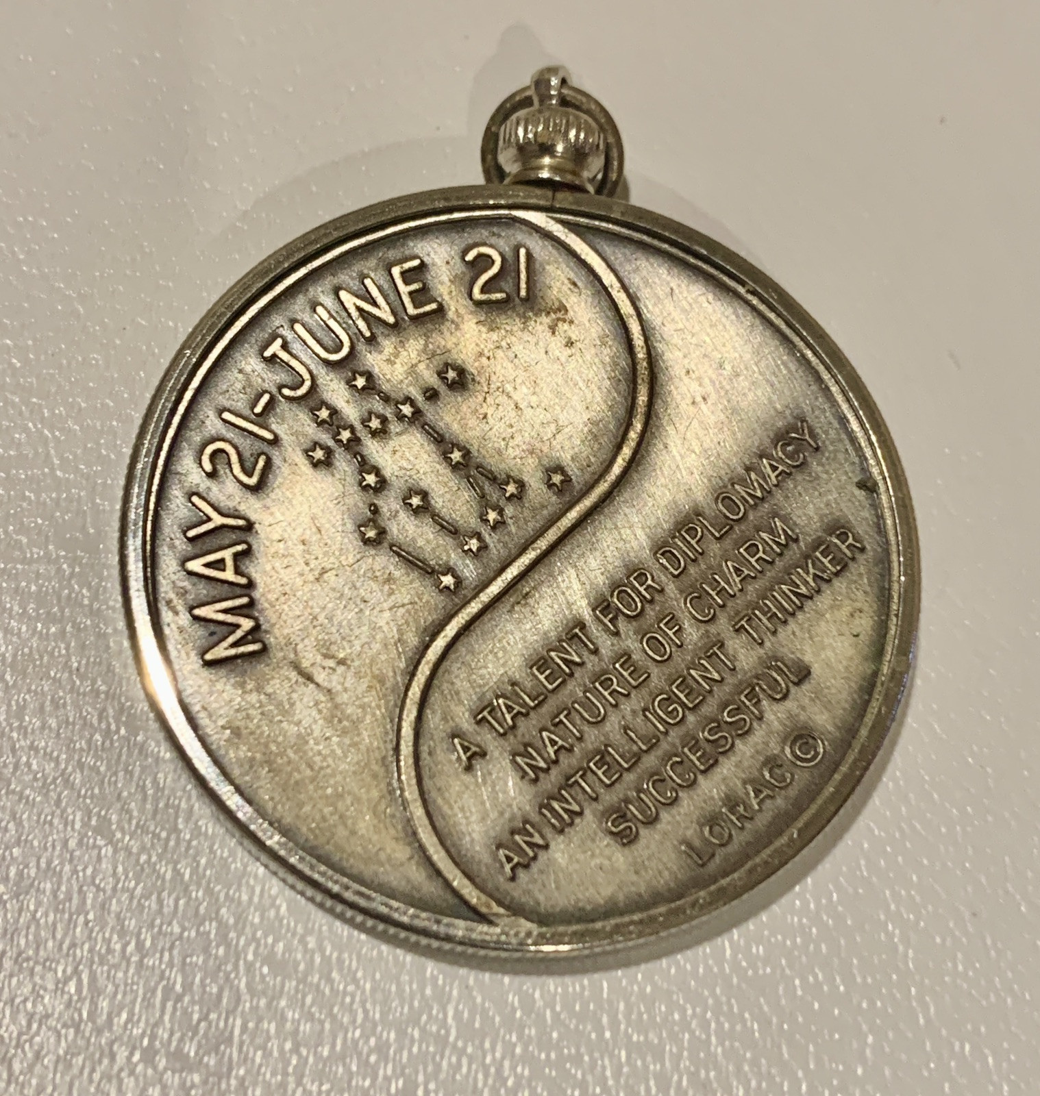 Be the first to review “Vintage Silver Tone Zodiac GEMINI LORAC Pendant 1.5"”