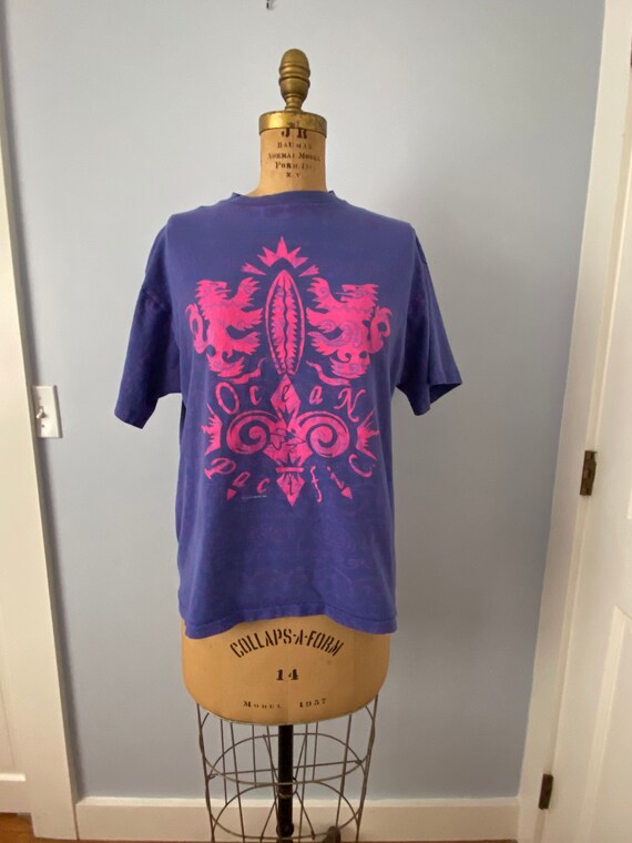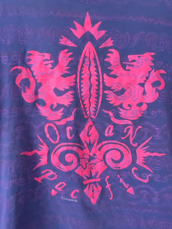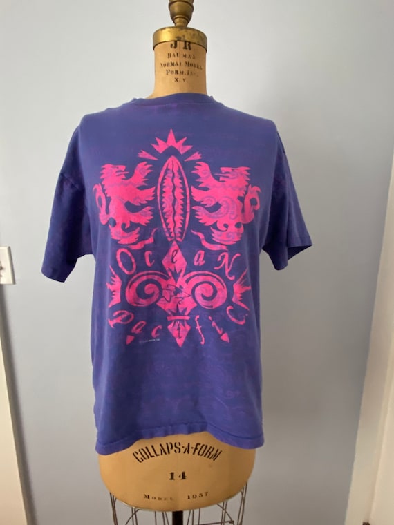 Vintage Ocean Pacific T-shirt, Surfer T-shirt, 1991 Ocean Pacific All-Over Print T-shirt, 1990s Fashion, Purple and Pink, Large, OP Tee