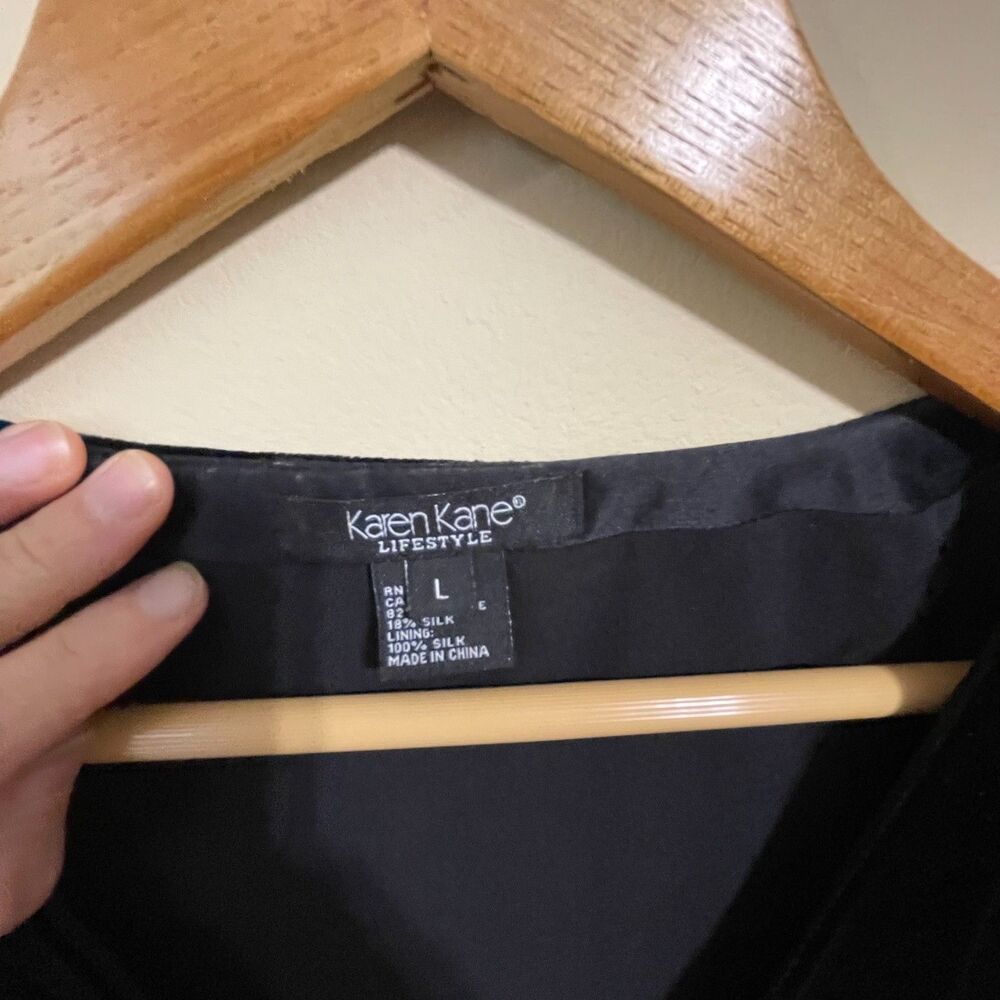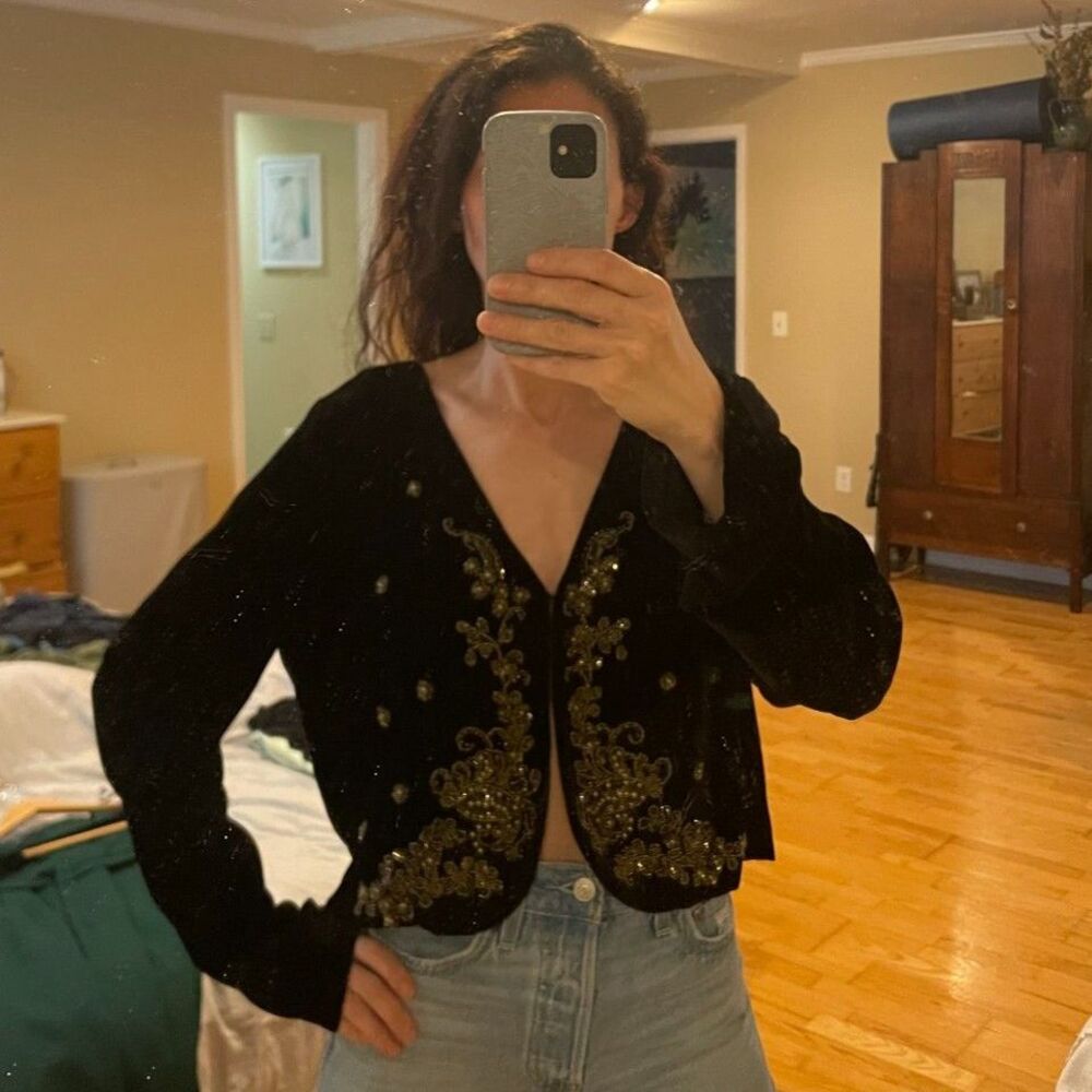 Be the first to review “Vintage Karen Kane Black Velvet Beaded Evening Silk Blend Bolero Jacket”
