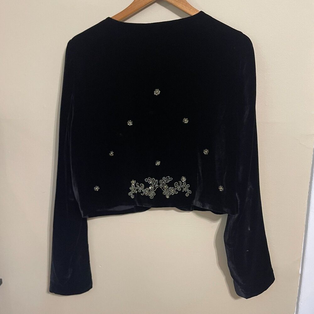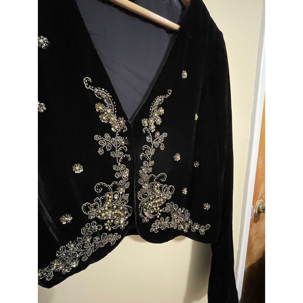 Vintage Karen Kane Black Velvet Beaded Evening Silk Blend Bolero Jacket