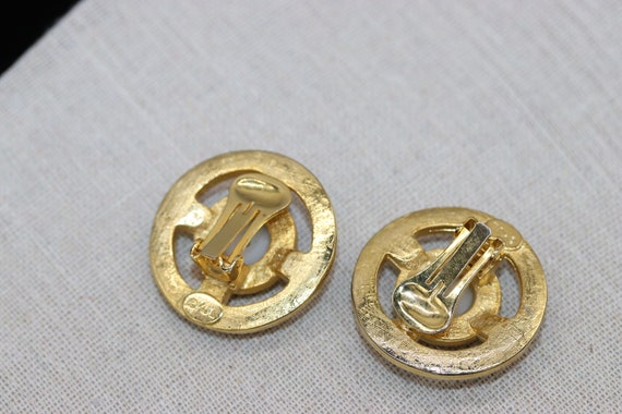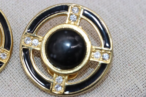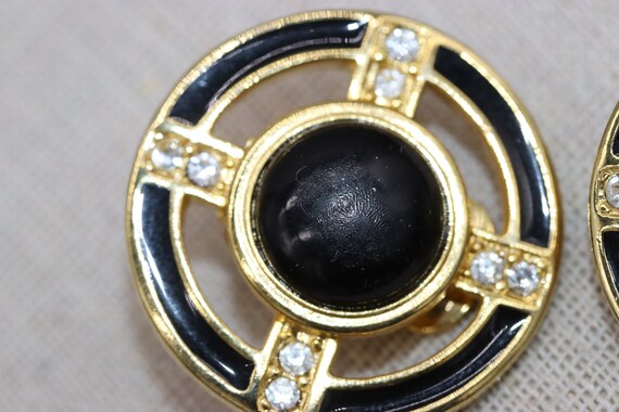 Vintage Signed Kenneth Jay Lane KJL Clip On Earrings Circular Black Enamel Black Cabochons