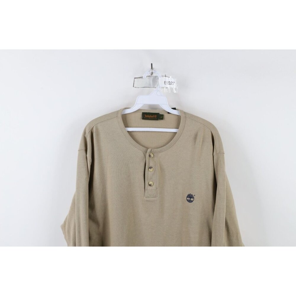 Vtg 90s Timberland Mens L Faded Cotton Ribbed Knit Long Sleeve Henley T-Shirt