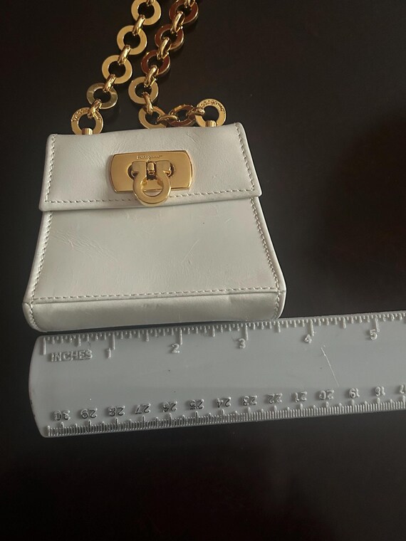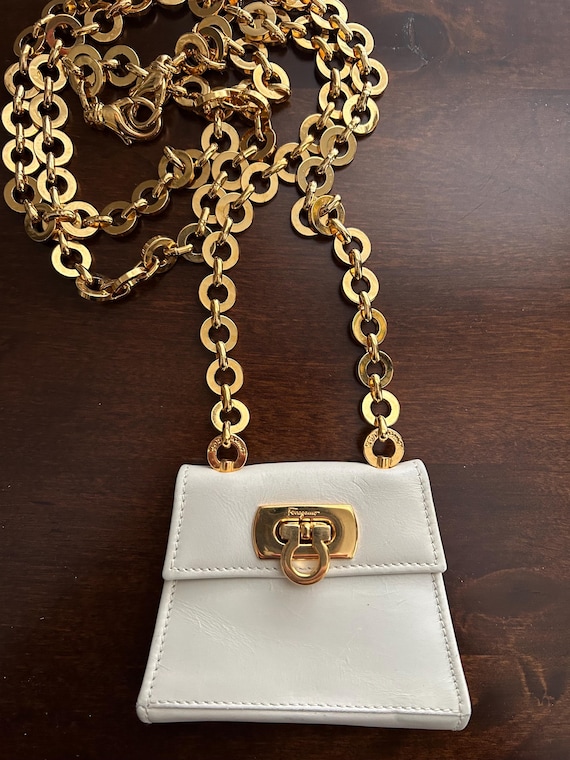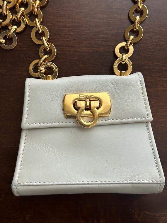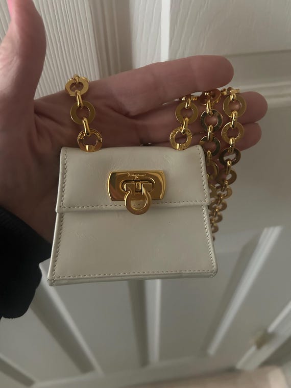 Vintage Salvatore Ferragamo gancini chain mini leather purse/belt. Signed and numbered. Excellent vintage condition!