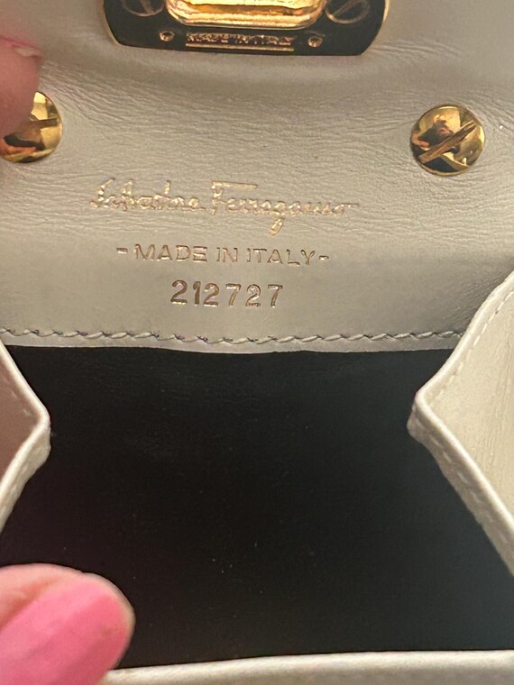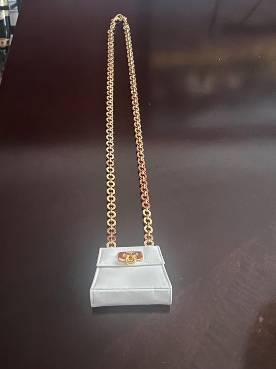 Be the first to review “Vintage Salvatore Ferragamo gancini chain mini leather purse/belt. Signed and numbered. Excellent vintage condition!”