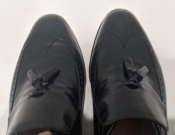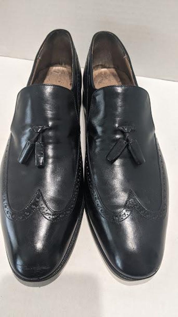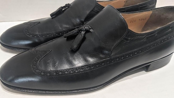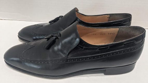 Vintage Salvatore Ferragamo Black Leather Dress Tassel Loafer. Renzo 10 1/2 B Narrow