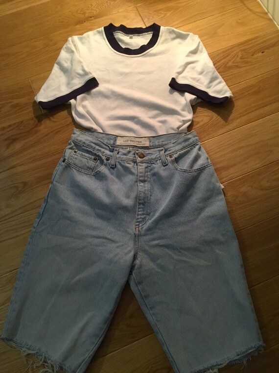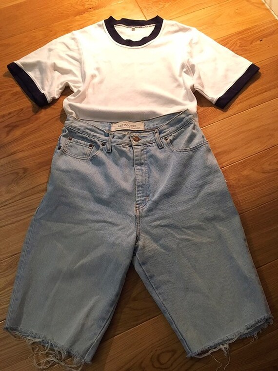 Vintage Distressed Long Light Blue Shorts by Lee Cooper Size 8/10 Indie Boho Hippie Festival Grunge