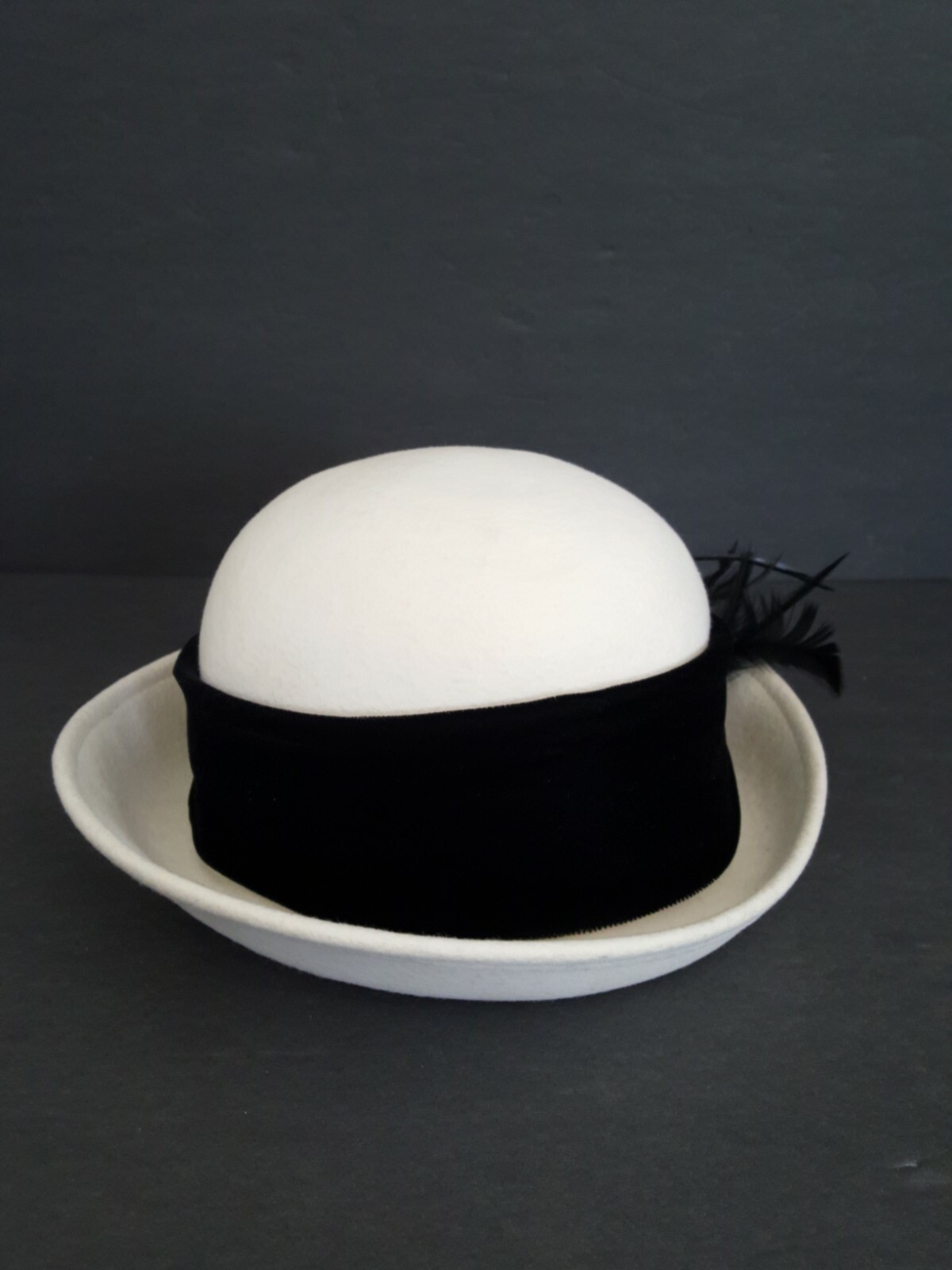 Vintage Galliano Sorbatti White Ladies Hat 100% Wool Natural Feathers Made Italy