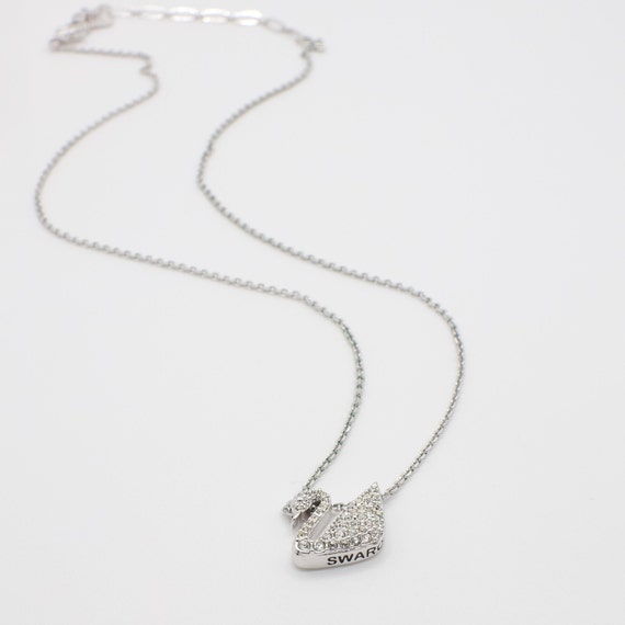 Vintage Swarovski Necklace, Swan Necklace, Rhodium Plated, White, 16 Inch Chain with Extender, Crystal Necklace