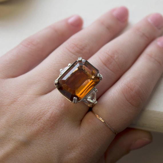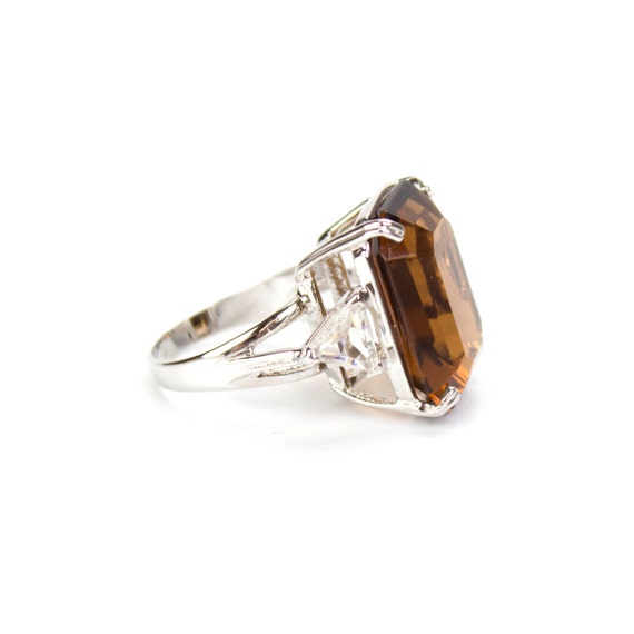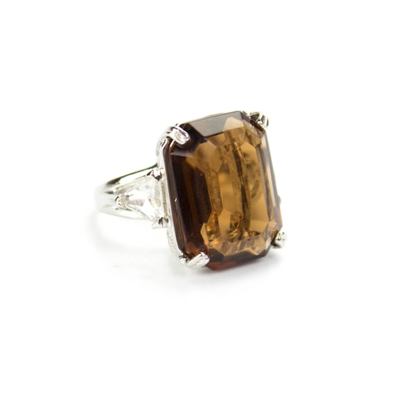 Vintage Ring Cocktail Ring Smoky Topaz and Clear Swarovski Crystals Rhodium Plated Silver Tone #R2239 - Limited Stock - Never Worn
