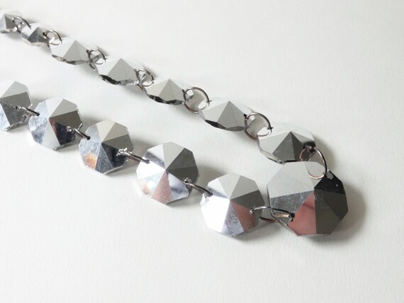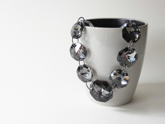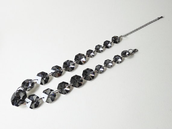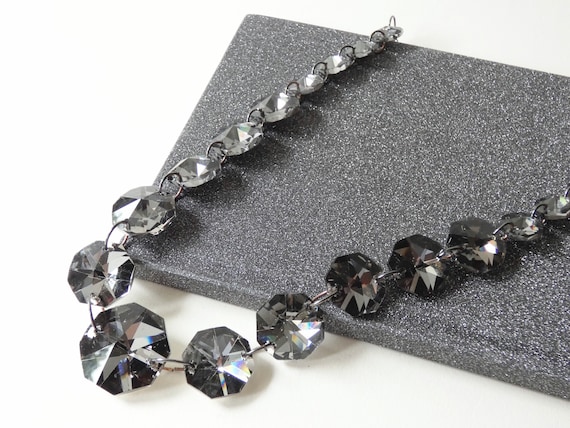 Vintage Swarovski octagonal graduating grey crystal linked silver tone necklace, octagon Swarovski crystal chunky pendant necklace.