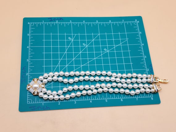 Be the first to review “Vintage Swarovski double faux pearl necklace with Swarovski crystal center pendant”