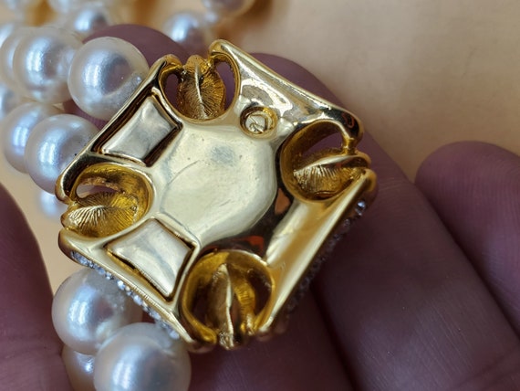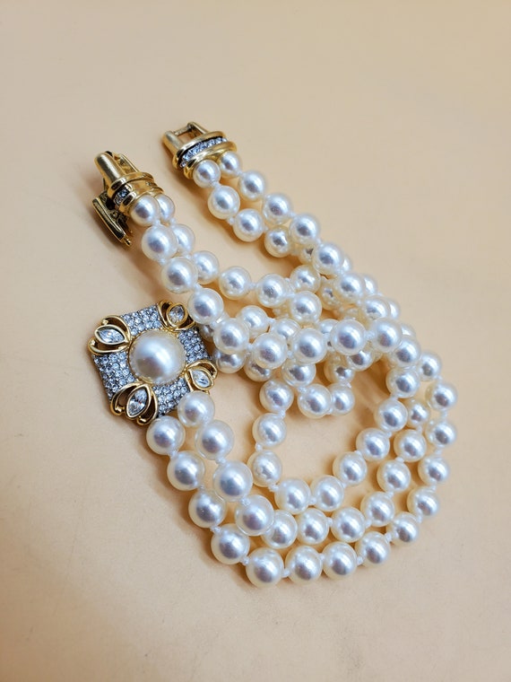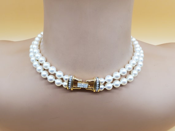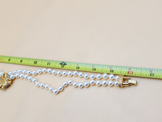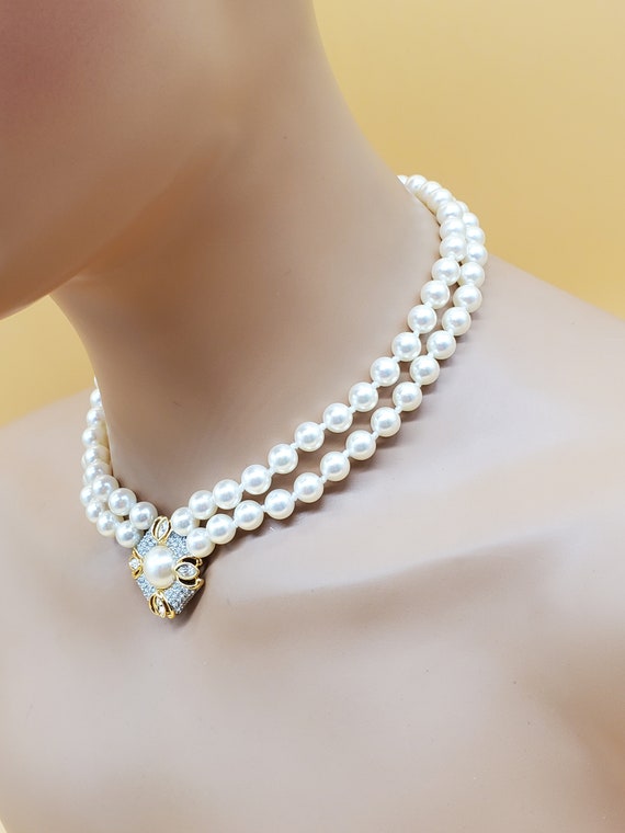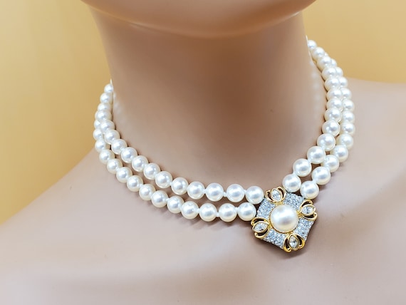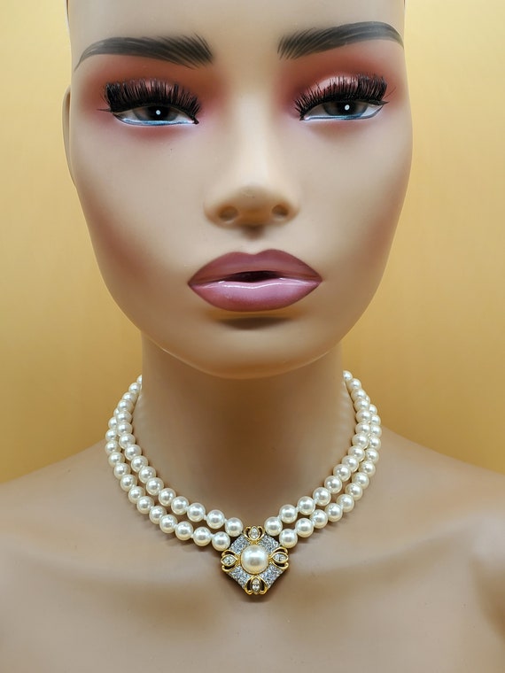 Vintage Swarovski double faux pearl necklace with Swarovski crystal center pendant