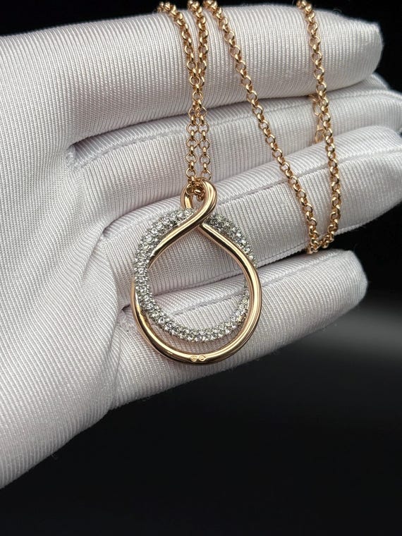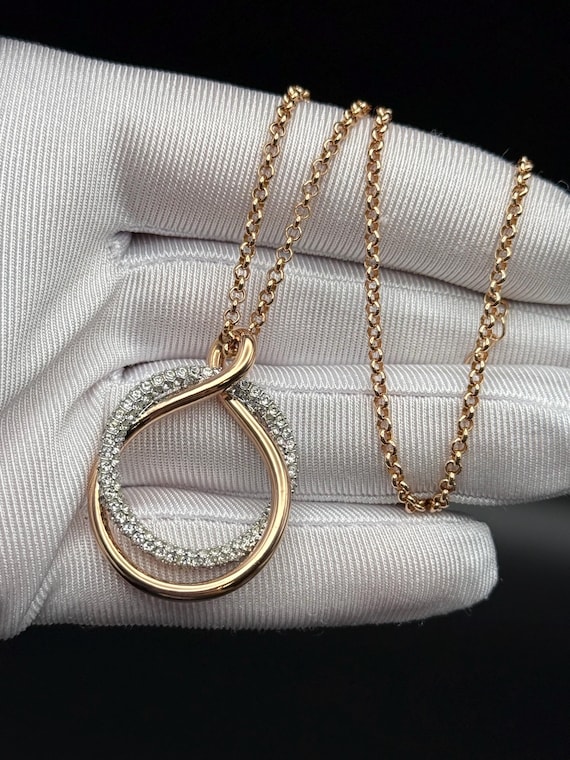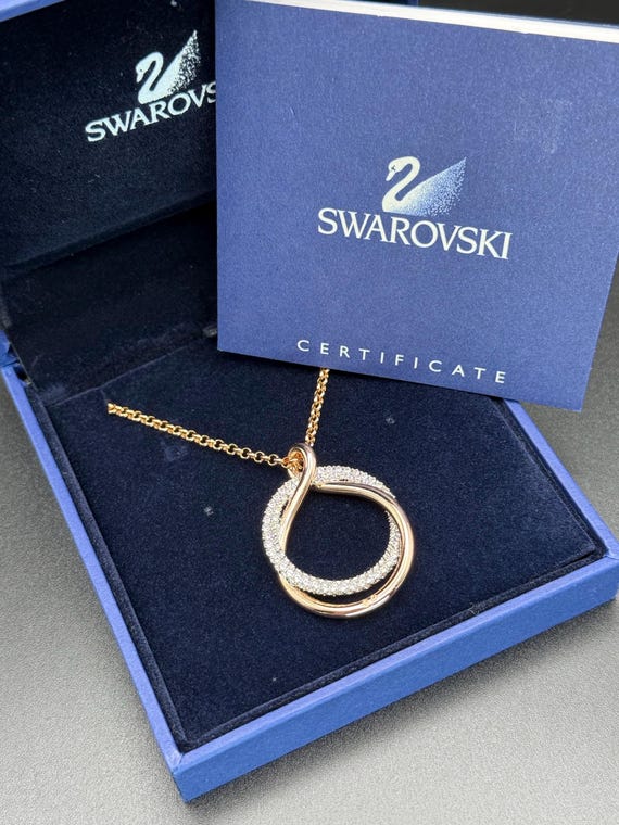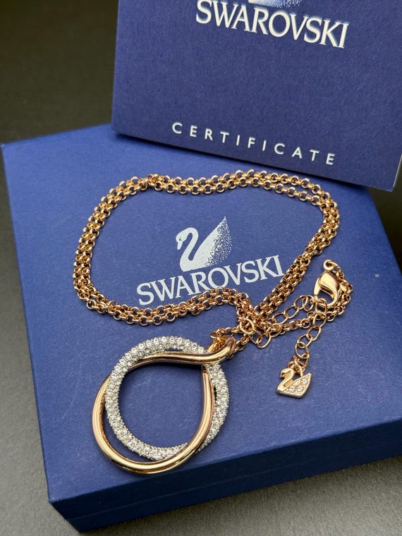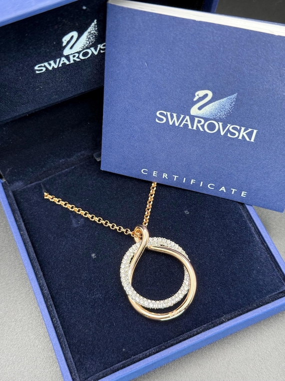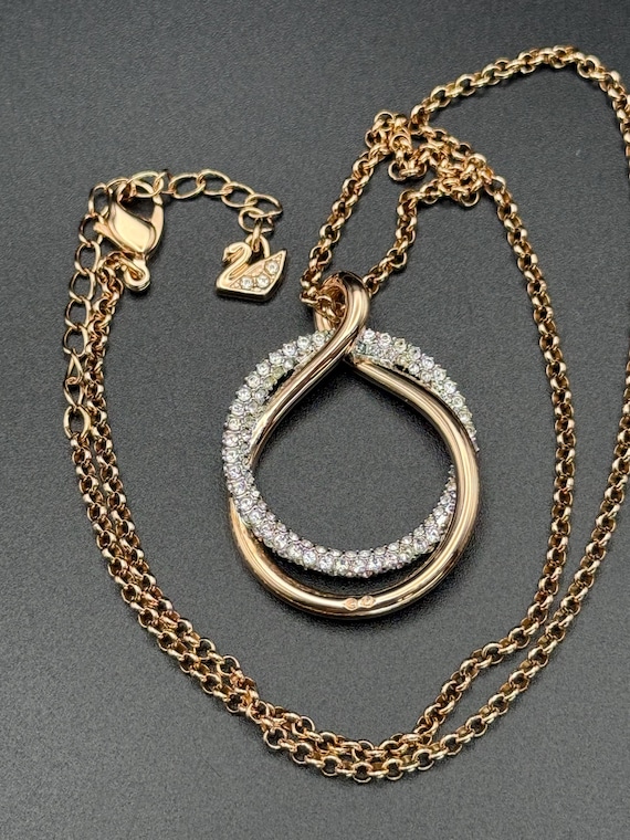 Vintage Swarovski necklace Rose Gold tone Swan Austrian fine crystal Sparkling Women Ladies Cocktail Dress Wedding