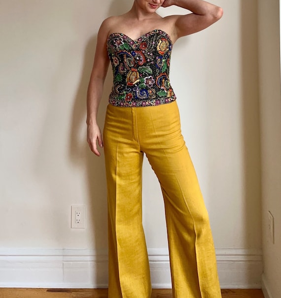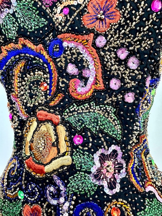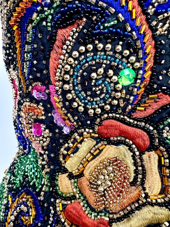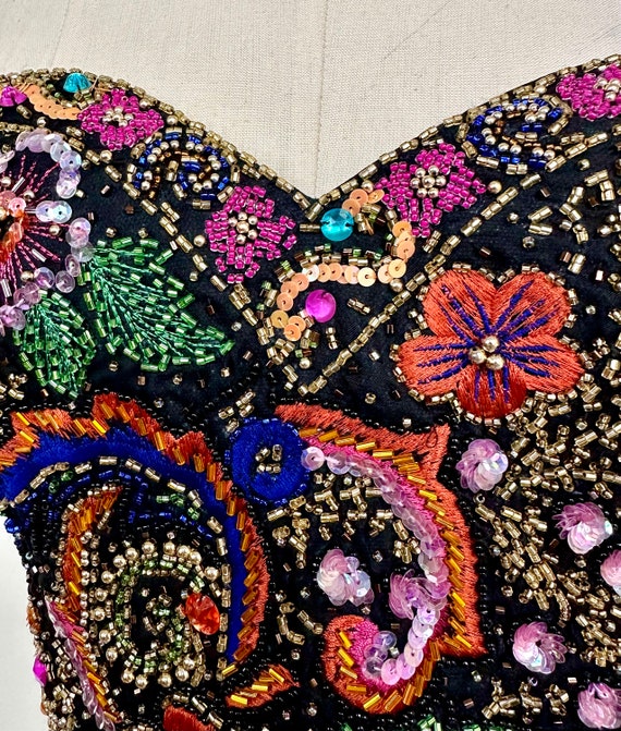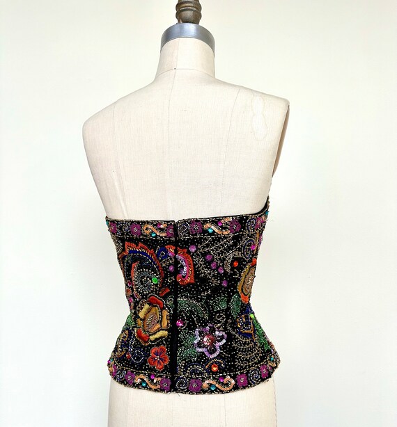 Vintage Oleg Cassini Silk Beaded and Embroidered Bustier Top | 34B