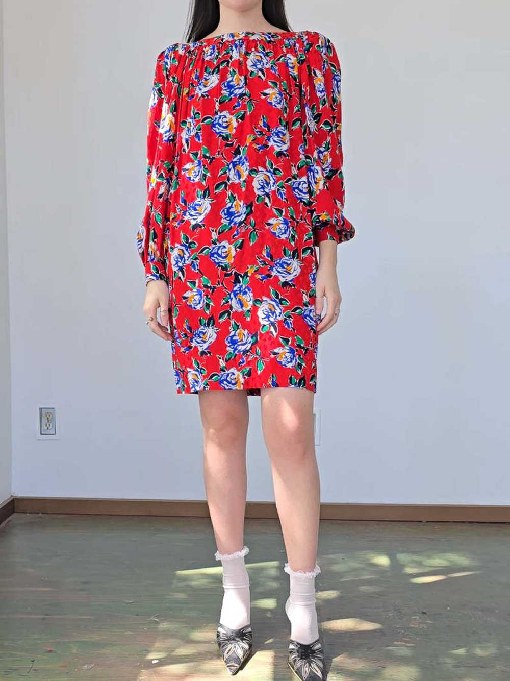 Yves Saint Laurent Pure Silk Red Floral Dress