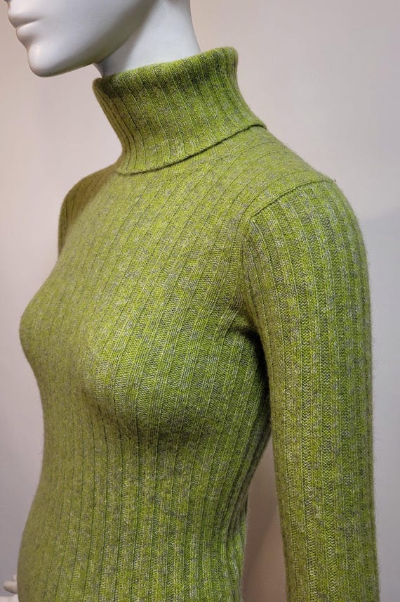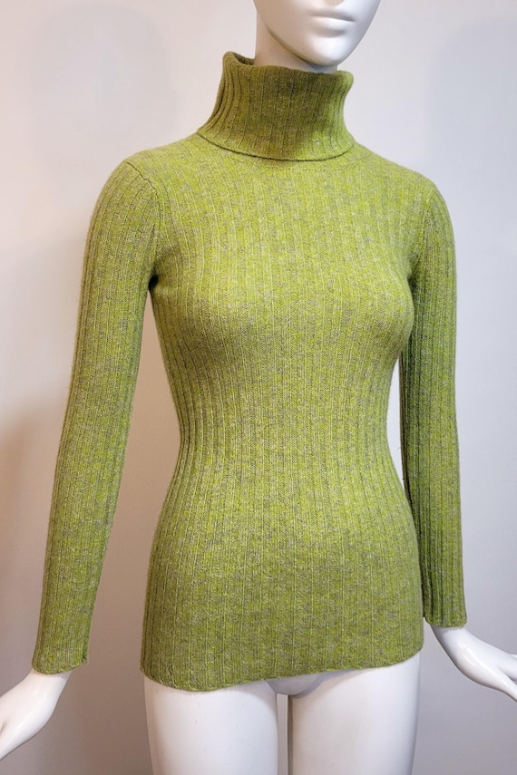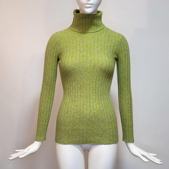 YVES SAINT LAURENT Vintage 1970s Green Cashmere & Wool Turtleneck Sweater